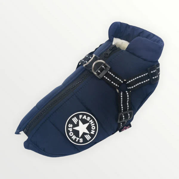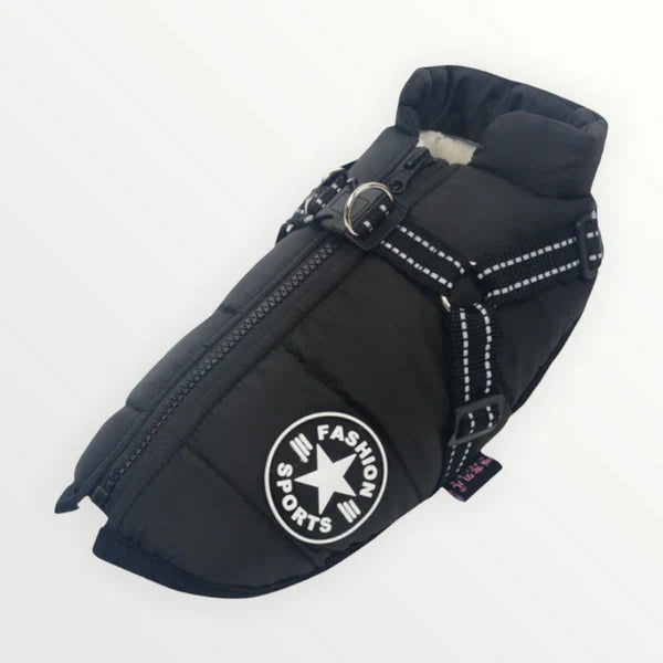 Hold din hund varm, tør og tryg hele vinteren med vores vandtætte vinterjakke med integreret sele.